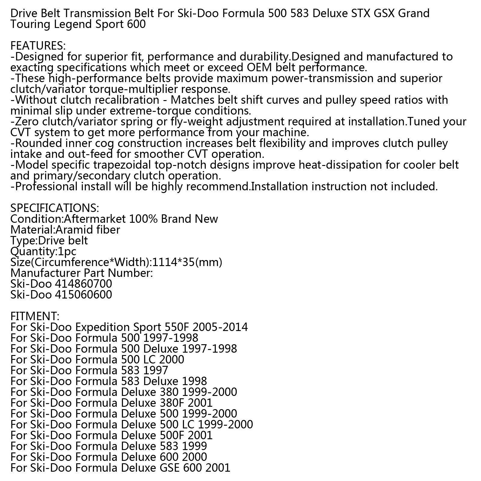 MadHornets Drive Belt For Ski-Doo Formula Legend Touring MXZ Skandic 414860700 415060600 UE