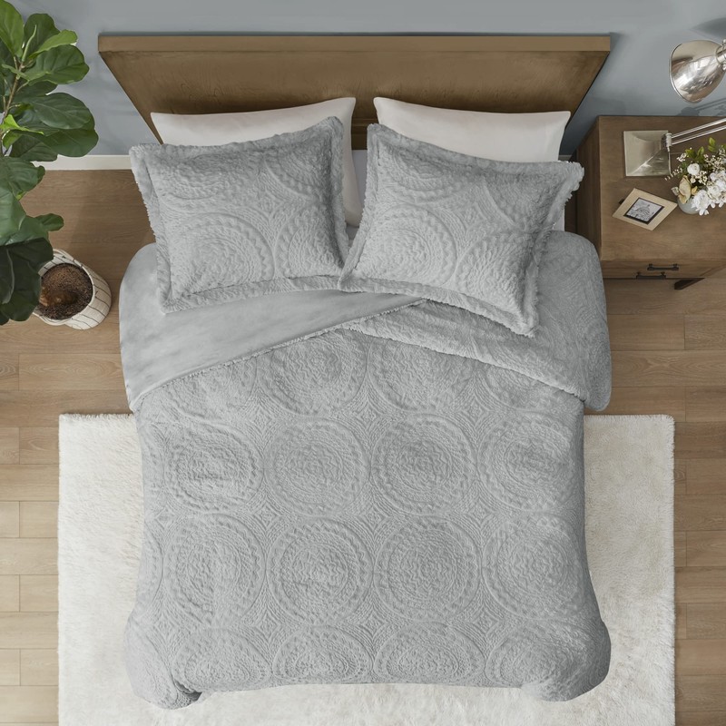 Transform your bedroom with the elegant style of Madison Park's Arya Medallion Ultra Plush Comforter Mini Set. The rich grey comforter and matching sham feature an embroidered medallion design on the ultra-soft plush fabric. Machine washable for easy care, this comforter set makes a stunning addition to your home.