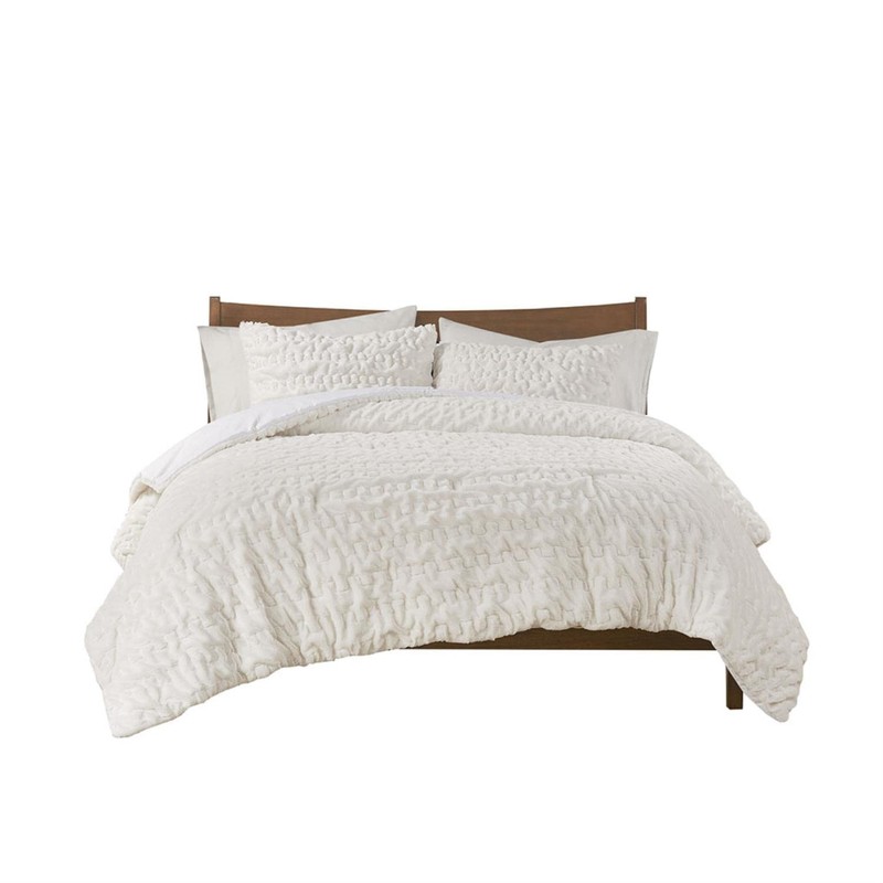 Madison Park Blair Ruched Faux Fur Comforter Set - Luxurious Bed Cover - Modern Down Alternative, All Season Bedding with Matching Shams, King/Cal King Ivory 3 Piece
