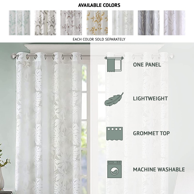 Madison Park Semi Sheer Single Curtain Modern Contemporary Botanical Print Out Design Grommet Top, Window Drape for Living Room, Bedroom and Dorm, 50x84, Bird White