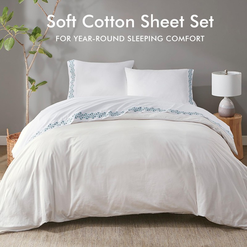 - Bed sheets featured Embroidery on the flat sheet and pillowcase hem face side only, Soft and cozy bedding sheets and pillowcases for all season comfort