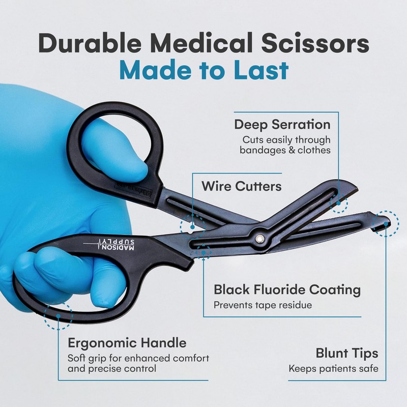Madison Supply - Medical Scissors, EMT and Trauma Shears, Premium Quality 7.5" - Fluoride-Coated with Non-Stick Blades 1-Pack by Madison Supply Store