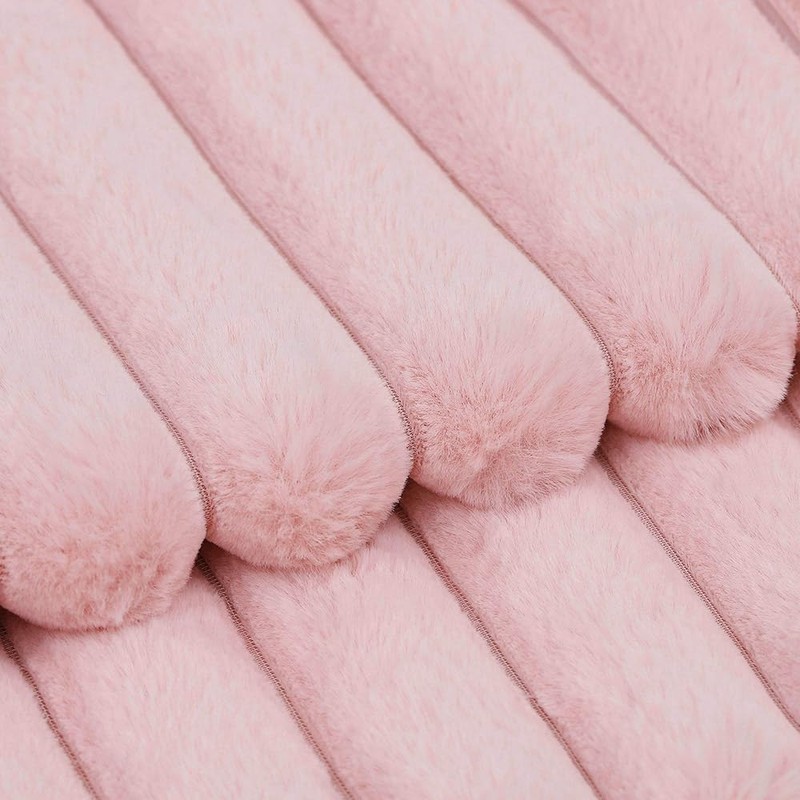 MADIZZ 2枚セット フェイクファー プラッシュ スローピローカバー ふわふわストライプ ソフト装飾クッションカバー ソファ ベッドルーム ピローシェル用 50 x 50 cm ピンク
