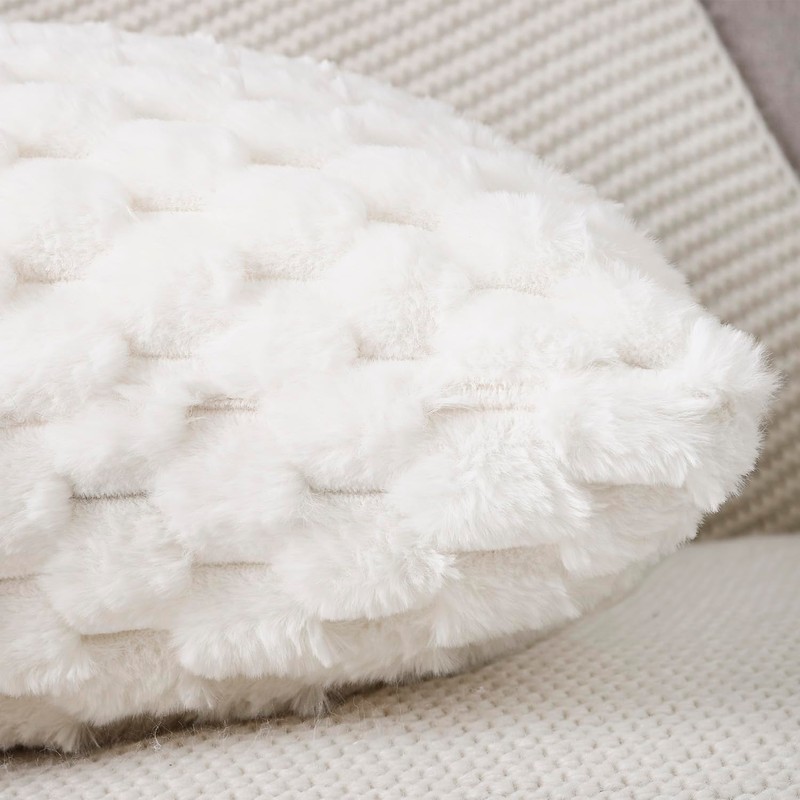 MADIZZ Faux Wool Cream White Throw Pillow Covers 22x22 Inch Set of 2 Super Soft Boho Pillow Covers Decorative Textured Throw Pillowcases Modern Farmhouse Home Decor for Sofa Bedroom