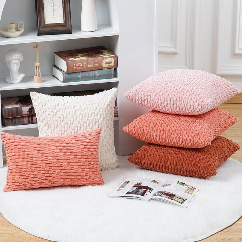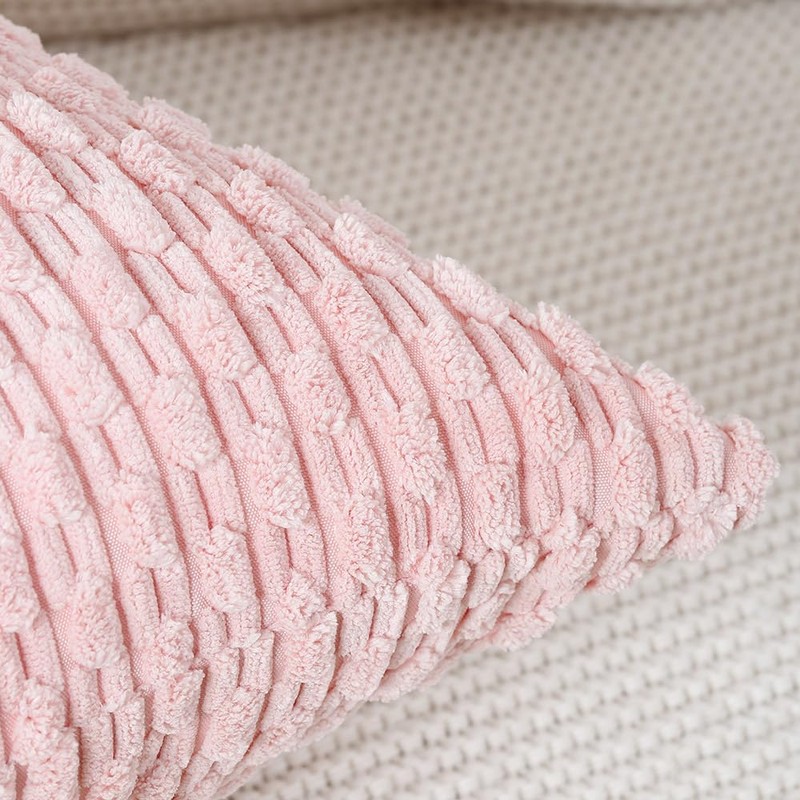 Madizz Pack of 2 Boho Corduroy Cushion Covers 24x24 inch, 60x60 cm, Light Pink Soft Decorative Throw Pillow Covers for Bedroom Sofa Pillow Shell