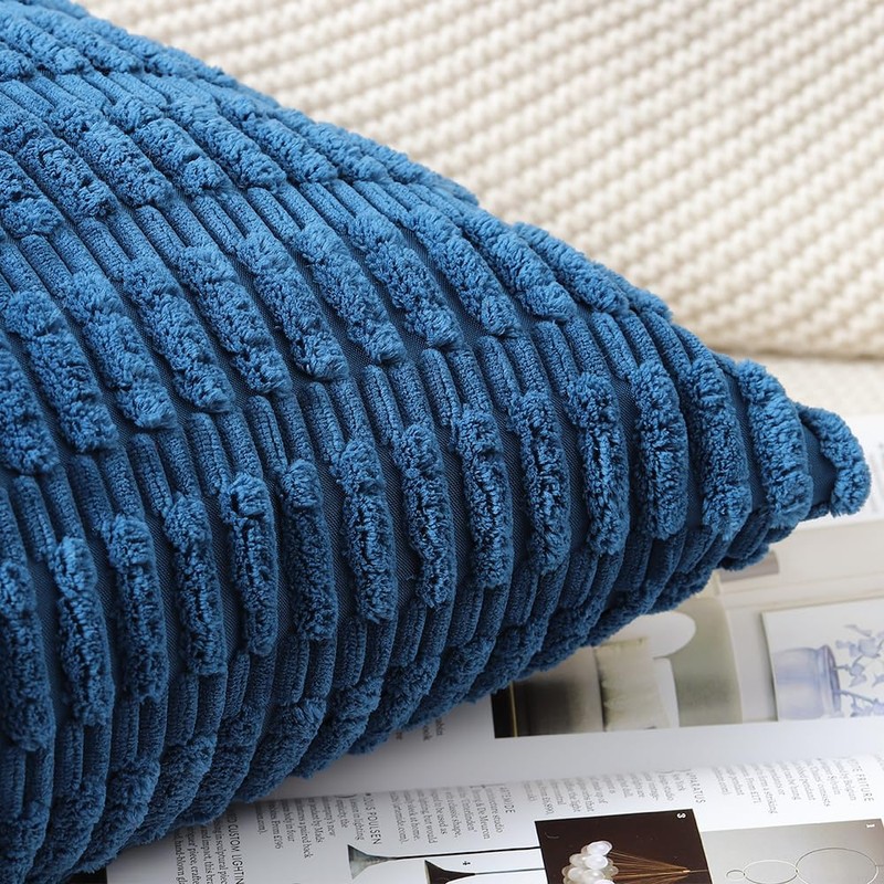 MADIZZ Pack of 2 Boho Striped Corduroy Throw Pillow Covers 24x24 Inch Blue Soft Decorative Cushion Cover for Sofa Bedroom Pillow Shell