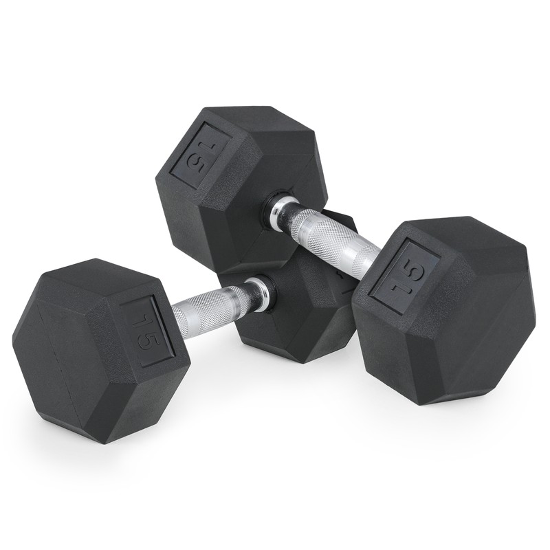2 Pcs 15LBs Rubber Coated Hex Dumbbell Fitness & Exercise Arm Strength Training