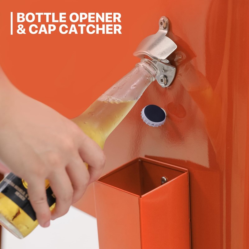 • Functional Benefits - There has a bottle opener and bottle cap catcher attached to the side, this design helps you drink cold drinks quickly and easily. Overall a one-stop beverage station.