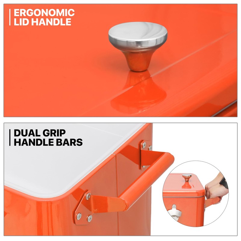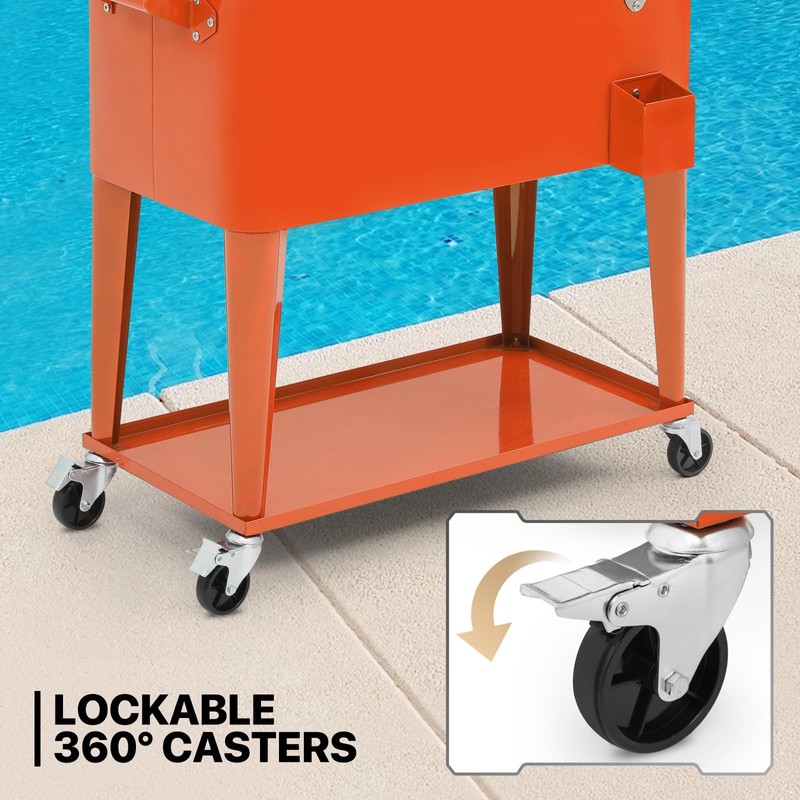 MADOG 80-qt Rolling Cooler on Wheels Outdoor Backyard Bar Ice Cooler w/Handle, Portable Beverage Pool for Cookouts, Tailgating, Grilling-Out W/Bottle Opener, Catch Tray, and Locking Wheels, Orange