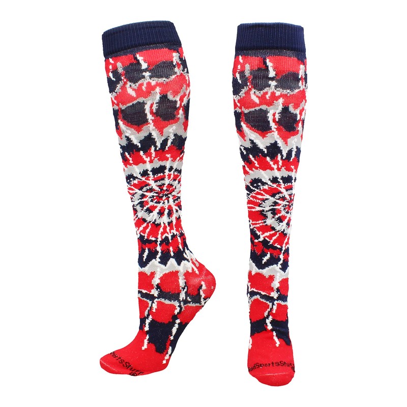 MadSportsStuff Crazy Tie Dye Socks Over the Calf (Navy/Red/White, Small)
