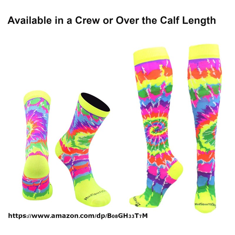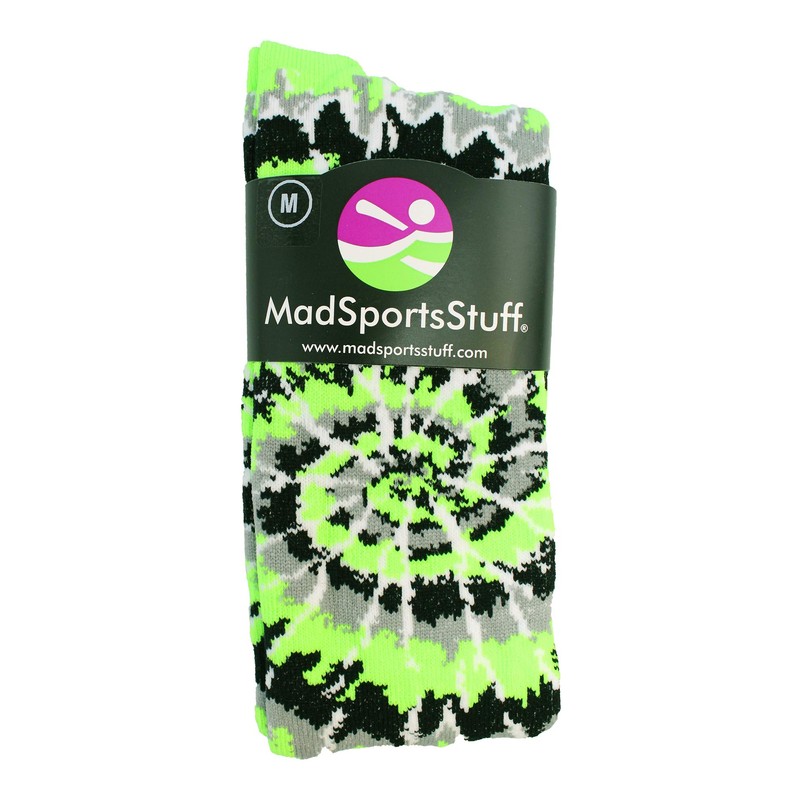 MadSportsStuff Crazy Tie Dye Socks Over the Calf (Neon Green/Black/White Medium)