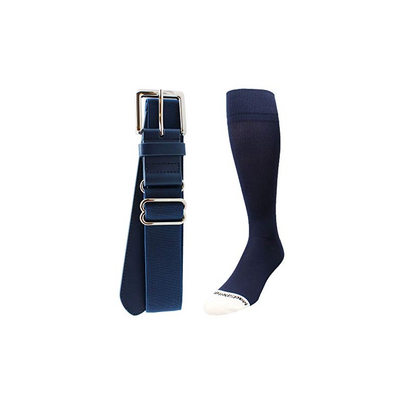 MadSportsStuff Pro Line Softball Socks and Belt Combo (Navy, Small)