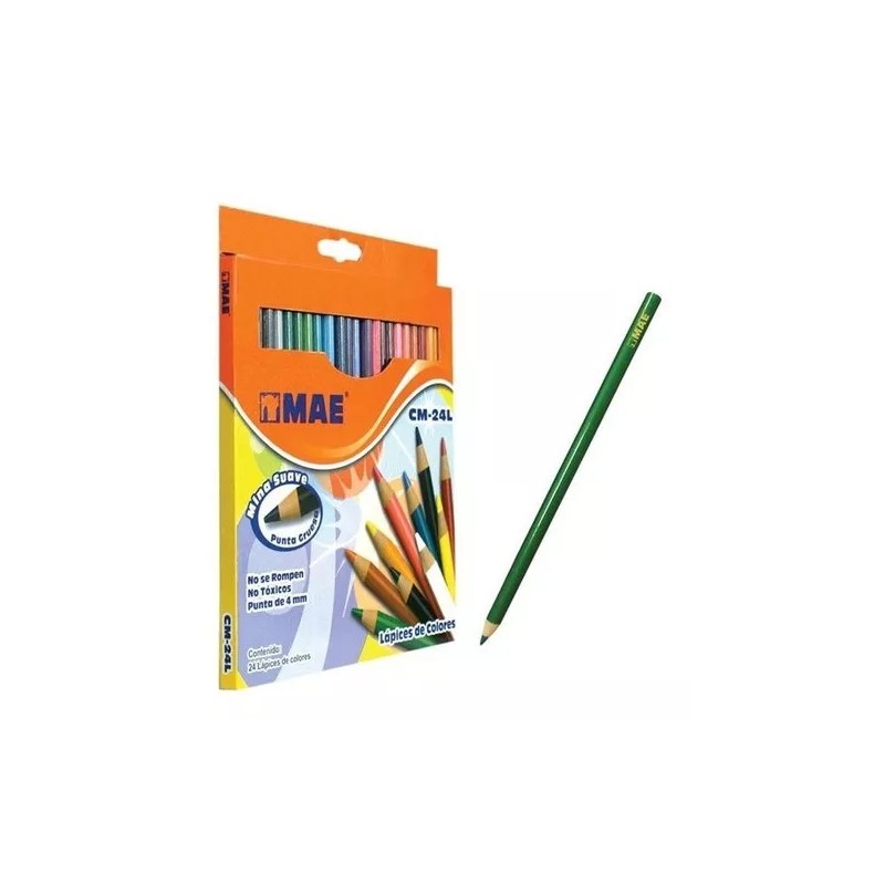 MAE Caja Con 24 Colores Largos Mae Cm-24l Punta Gruesa 4mm /v