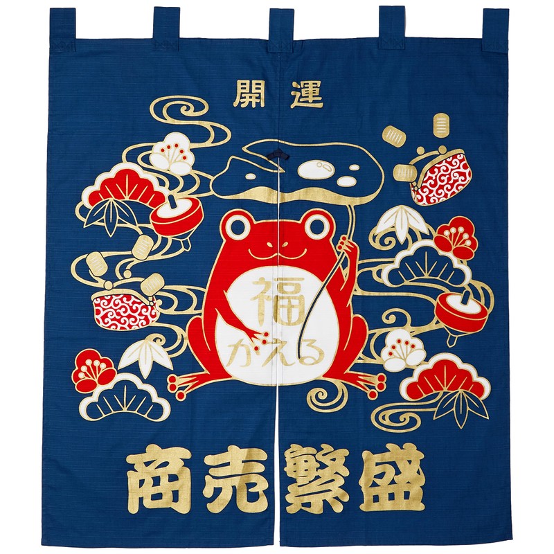 Maeda Dyeing 120952 Indigo 35.4 inches (90 cm) Kaiuntei Auspicious Noren Kaifun Frog Pattern