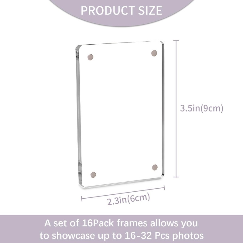 MaehSab 16 Pack Acrylic Refrigerator Magnet Picture Frames, High Transparency 2.3 x 3.5 Inch Clear Mini Fridge Frames for Instant Photos, Magnetic Frame for Refrigerator Display