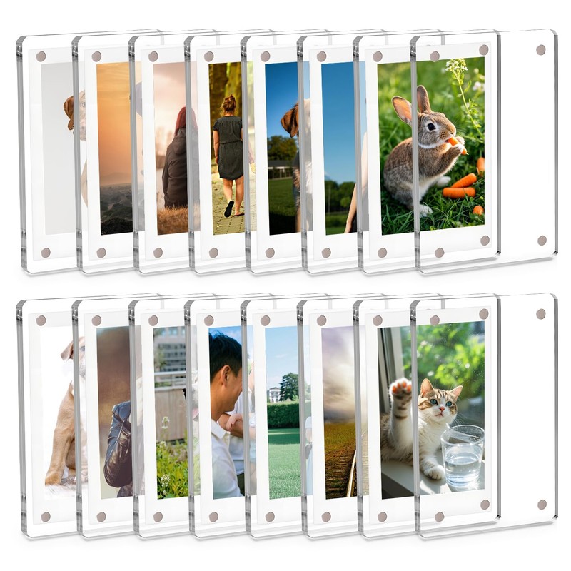 • VERSATILE DISPLAY OPTIONS: Maximize your photo display with the ability to use either one or both acrylic sheets. A set of 16 Pack frames allows you to showcase up to 10-20 Pcs photos, making it ideal for any occasion.