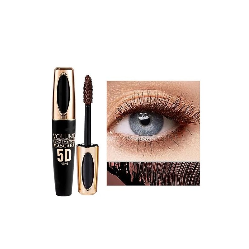 MAEPEOR 5D Silk Fiber Mascara Fuller & Voluminous Colored Eyelash Natural Waterproof Smudge-proof Mascara (02 Brown)