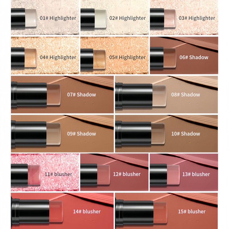 - 【Versatile Glamour】Highlighter sticks can naturally brighten the skin tone;dark and light blush can meet the needs of different makeup,add rosy luster to the face,and enhance the complexion;bronzer sticks can enhance the three-dimensional effect of the face