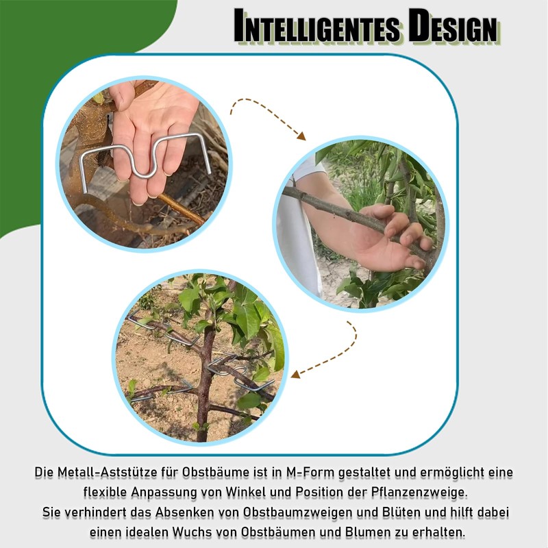 - SMART DESIGN The metal fruit tree branch support is designed in M shape, allowing flexible adjustment of the angle and position of the plant branches. This creates attractive plant shapes that increase the aesthetic value of the plants and create enchanting garden landscapes.