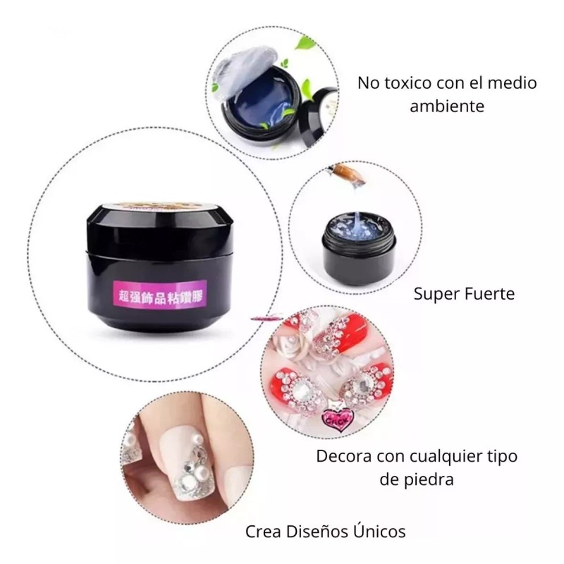 Fuerte adherencia: no se cae fácilmente, ideal para crear un hermoso diseño de uñas. Se adhiere a todo tipo de joyas, diamantes, aleación.