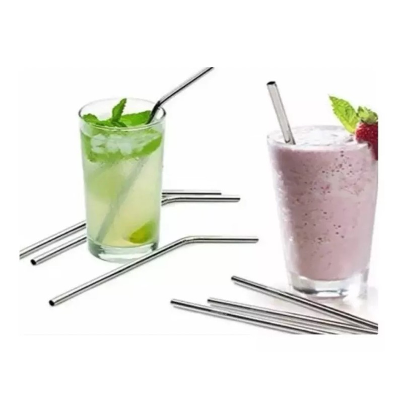 4 Popotes Acero Inoxidable Recto Curvo Cepillo Full