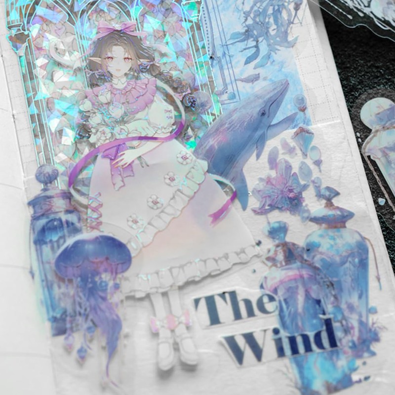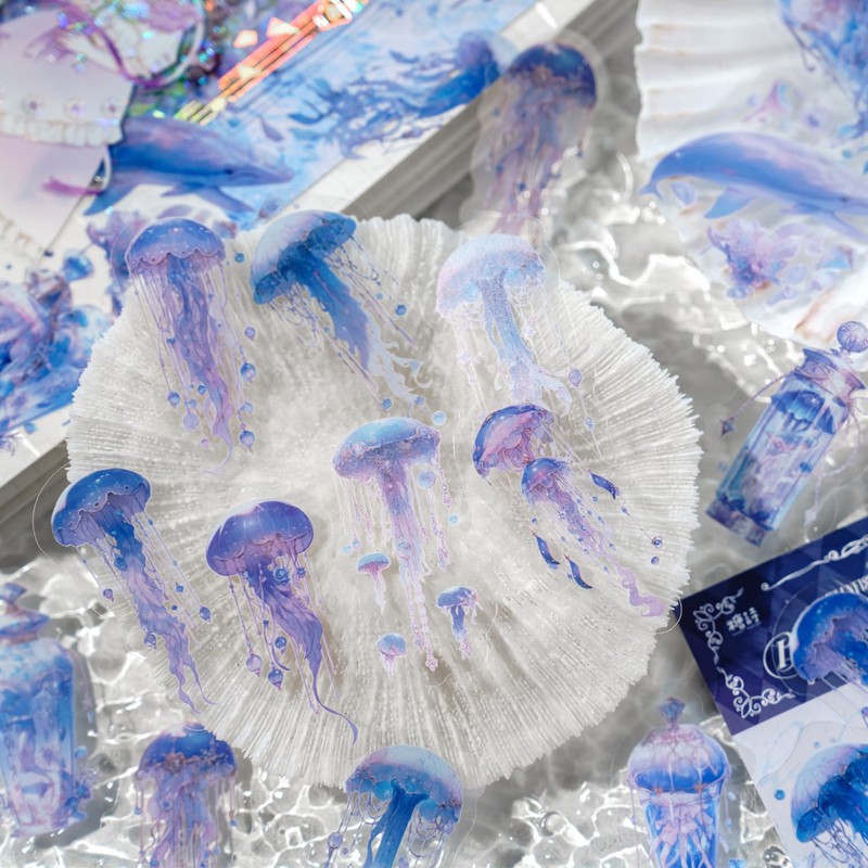 MAFELOE Scrapbook Stickers, 40 Pieces of PET Aesthetic Deco Stickers Journaling Supplies for Junk Bullet Journaling Card Making Daily Planner- Jellyfish Fantasy Series-E
