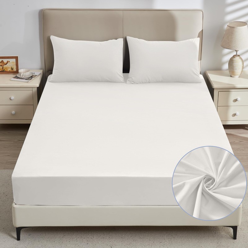 mafudoxi Mattress Protector 180 x 200 cm Waterproof Fitted Sheet Mattress Protector Breathable Mattress Topper for Mattresses up to 30 cm Incontinence Pad Washable Moisture Protection Bed Sheet White