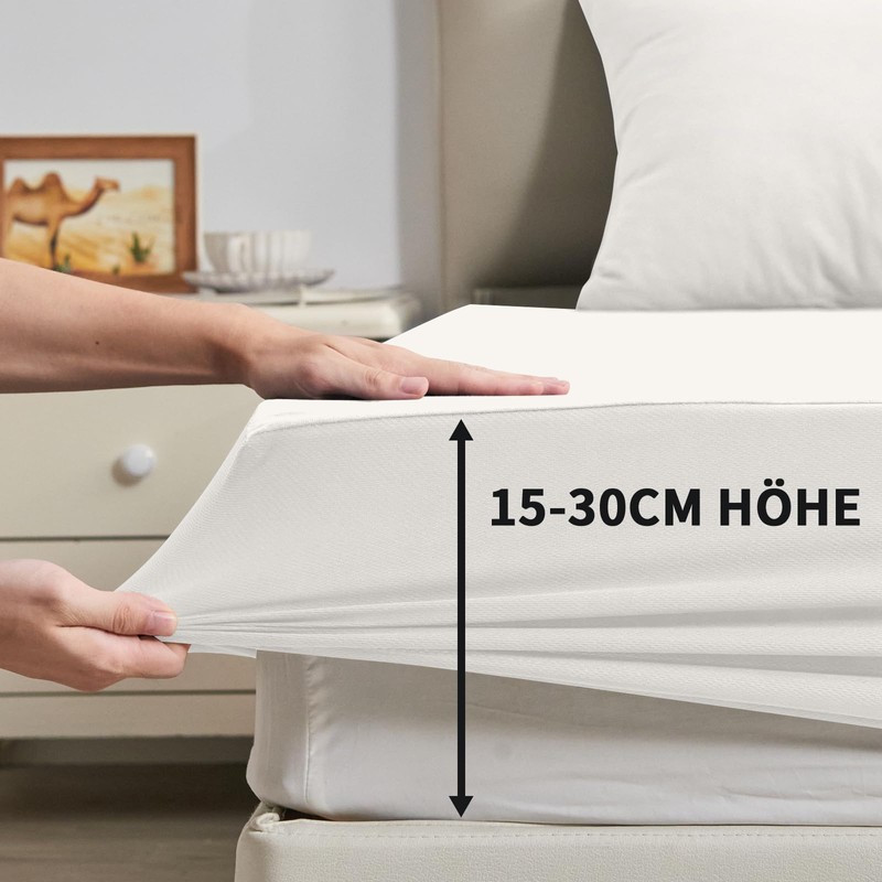 - Fits perfectly: the waterproof mattress protector fits all mattresses with a height of 15-30 cm. Our mattress topper has highly elastic sides, thanks to the all-round side, it is as easy to use as a fitted sheet or fitted sheet and nothing can slip.