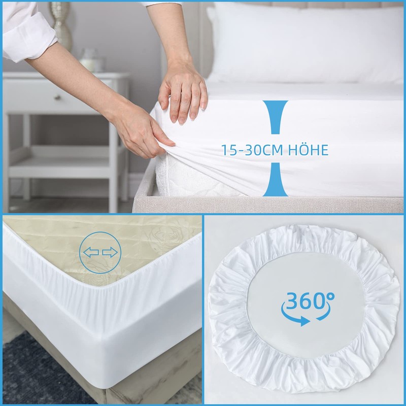 - Deep Pocket: With elastic around the edges, this mattress protector securely covers the mattress and can be easily pulled over the mattress. The fitted sheet can cover the mattress up to 30 cm, protecting the mattresses from wear and tear.