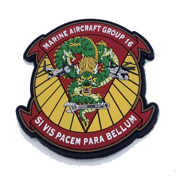 A 4" inch with Hook and Loop PVC patch of the Marine Aircraft Group MAG-16.