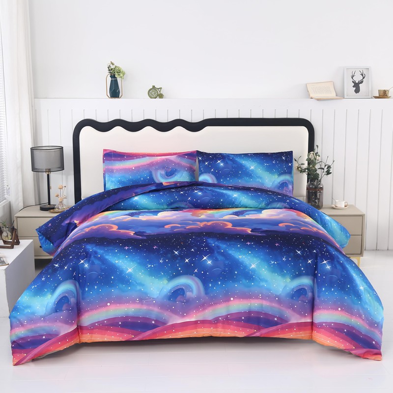 MAG 3Pcs Pink Microfiber Rainbow Comforter Full Size Set,Galaxy Girls Boys Kids Toddler Space Sets,Space Comforter Full Size,Star Bedding Set,No Flat Sheet.