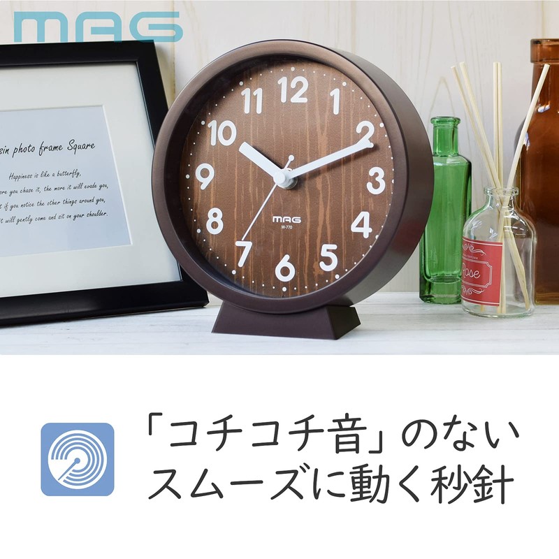 MAG W-770BR-Z Table Clock, Analog, Compote, Silent, Continuous Second Hand, For Both Standing, Brown