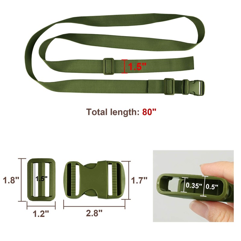 MAGARROW 65" × 1.5" Utility Straps with Buckle Adjustable, 4-Pack (Army Green (4-PCS))