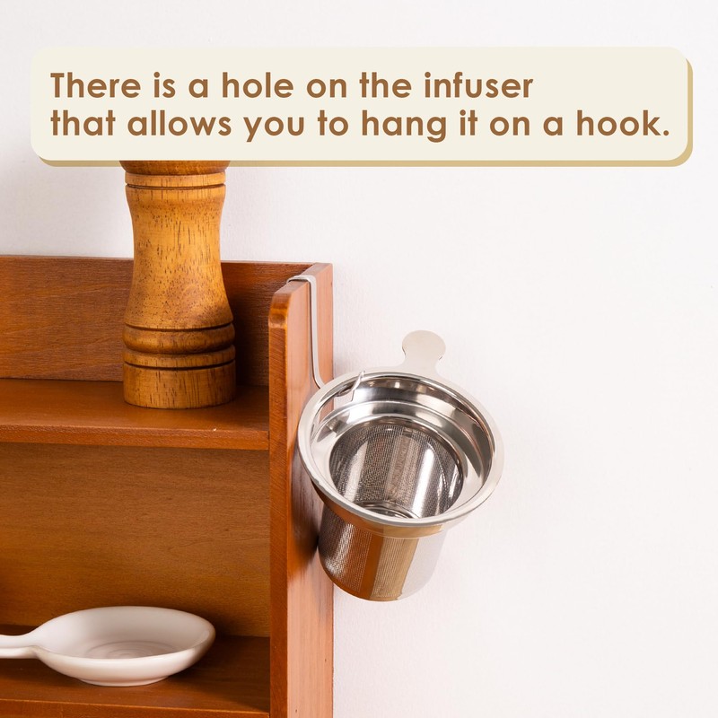 - [Tea Cup with Infuser and Lid]: The holes of the infuser are small enough to filter out tea leaves. After brewing the tea, you can place the infuser on the lid to keep the table clean.