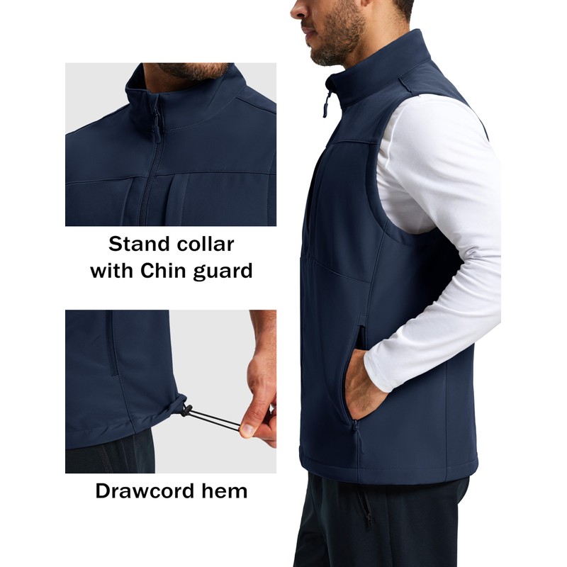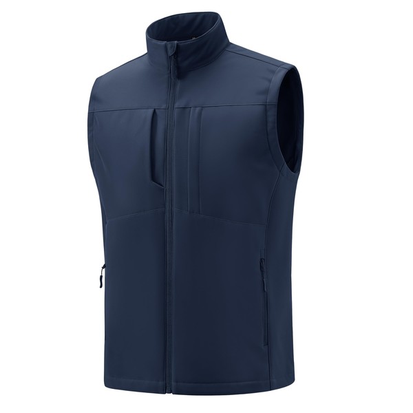 MAGCOMSEN Golf Vest for Men Softshell Fleece Lined Sleeveless Jacket with Pockets Lightweight Windproof for Hiking Runing Cycling Navy, M