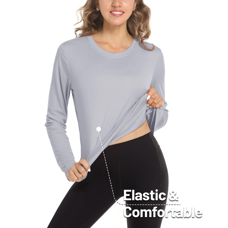 MAGCOMSEN Women Rash Guard Long Sleeve Sun Protection SPF Athletic Shirts Moisture Wicking Workout Top Dry Fit Grey L