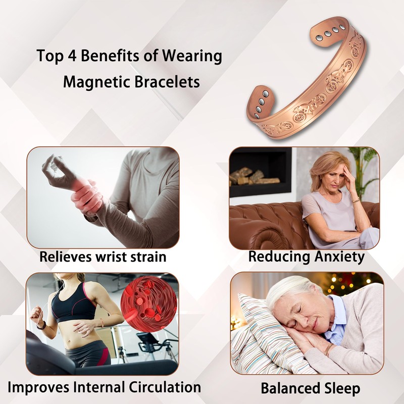 - Copper bracelets for arthritis and joint bracelets: inlaid with 8 high strength magnets. Symptoms - Wrist arthritis can be completely relieved by improving blood circulation and reducing inflammation