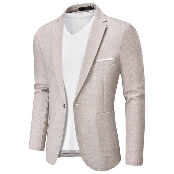 MAGE MALE Men's One Button Blazer Lightweight Casual Sport Coats Solid Color Suit Jacket Khaki