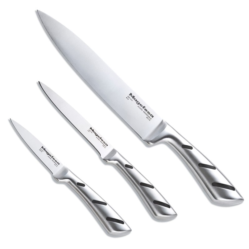 MAGEFESA PRISMA - Kitchen Knives Set, extremely strong 3Cr14 stainless Steel, Maximum precision edge, Ergonomic handle, easy Cleaning, 3-Piece set, dishwasher safe