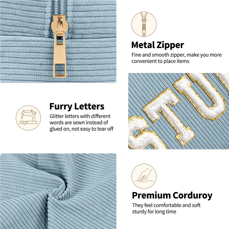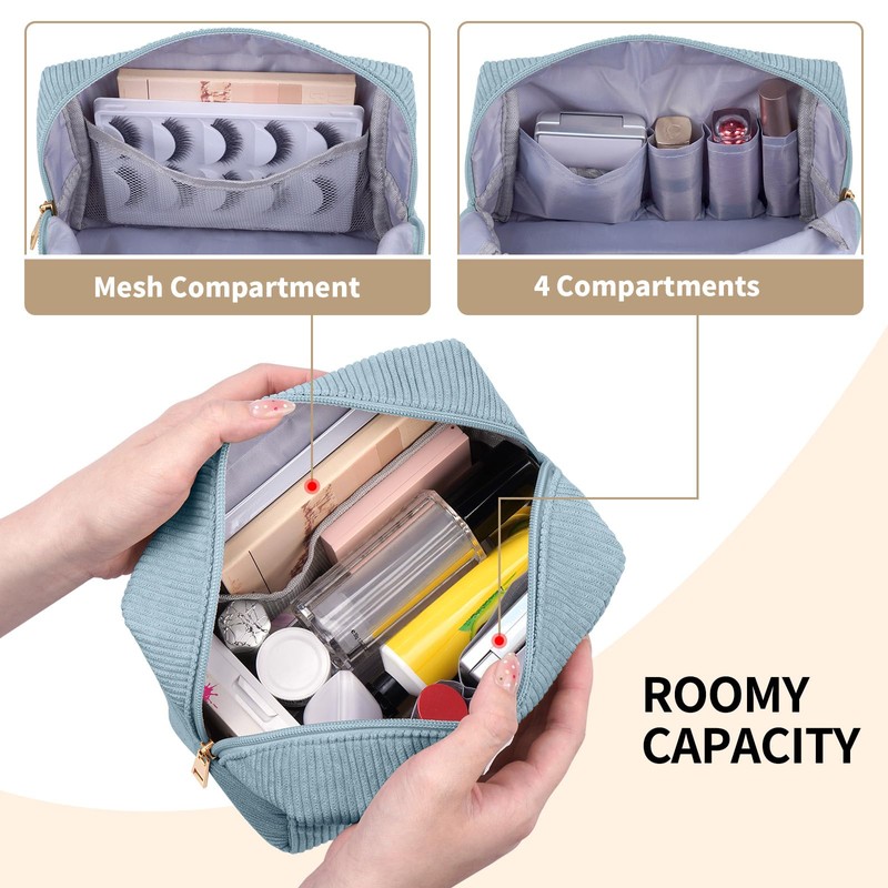 - 【HIGH-QUALITY MATERIAL】 Makeup bag is made from soft corduroy with a nice lining, easy to clean. And coupled with a sturdy metal zipper keep your items organized and secure.