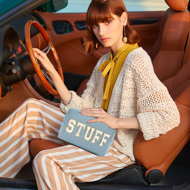 - 【GLITTER CHENILLE LETTERS & PRACTICAL LABELS】 Each make up bag features chic chenille letter patches, securely stitched with labels: HAIR, FACE, STUFF, SKIN. This elegant design adds a stylish touch while helping you easily categorize and access your cosmetics and toiletries.
