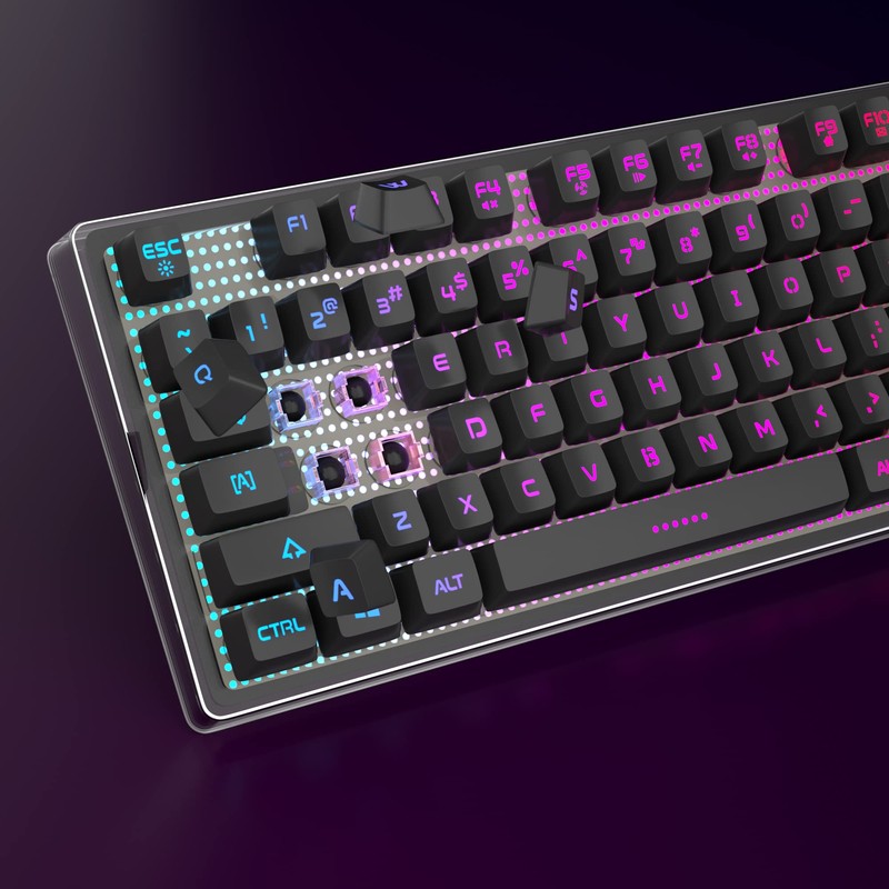 - UNIQUE AND STYLISH DESIGN: The pc gaming keyboard is composed of a transparent housing and a weighted metal base. The light is therefore displayed over the entire keyboard as well as the keys, while the light of other keyboards is actually only visible around the keys. The strong construction makes it long-lasting and never deformed, more practical and worthwhile.
