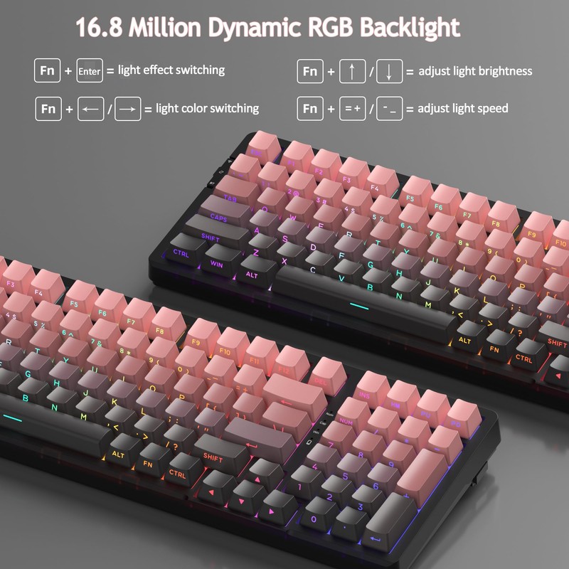 - [8000mAh LARGE BATTERY and PBT KEYCAPS]: The 96% layout mechanical keyboard saves more desktop space while retaining function keys and arrow keys for games and work. all 99 keys 100% anti-ghosting,unique side printed durable PBT keycaps,also equipped with a 8000mAh large-capacity battery, support win/mac dual system.