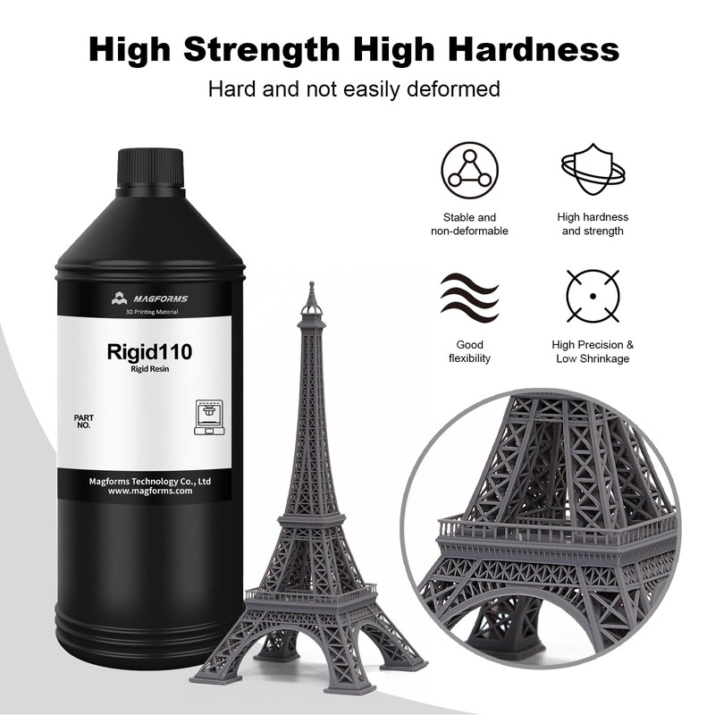MAGFORMS Rigid110 3D Resin with Ultra-high Rigidity & Strength for Functional Parts, High Precision Engineering Resin for LCD DLP 3D Printers (Black, 1000g)