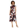 - Elegant midi dress, cocktail dress, and wedding guest dress featuring an A-line silhouette with abstract geometric print, cap sleeves, fitted bodice, and flared skirt falling below the knee. Versatile high neck dress for various occasions.
