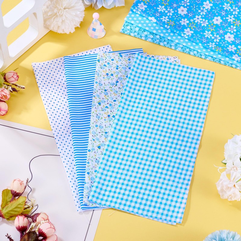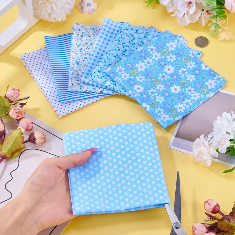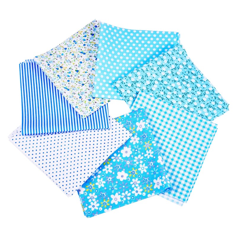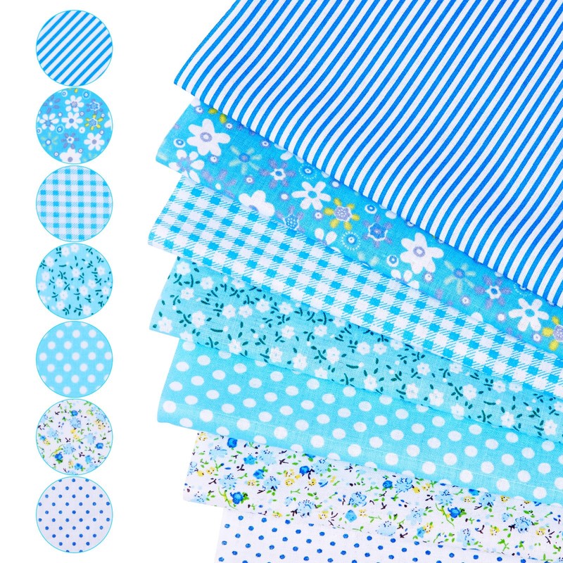 This bundle includes 7 unique cotton fabric sheets featuring a variety of designs such as floral, grid, polka dots, and stripes. Perfect for patchwork, sewing, quilting, and other DIY crafts, offering endless creative possibilities.