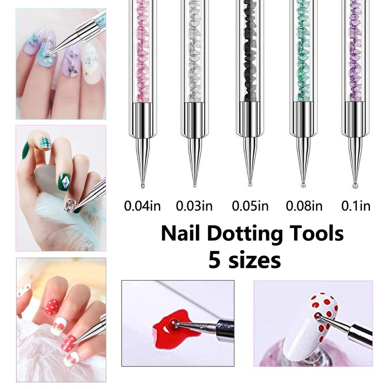MAGIC ARMOR 5pcs Nail Art Liner Brushes - Double Ended Nail Art Pens with Nail Dotting Tools, Nail Art Tools Shiny Handles-Easy To Use Nail Art Point Drill Drawing Tools for Beginner DIY Nail Art Design