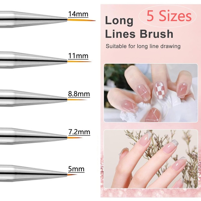 • ❀【Double head design】-- Each Liner brush has two different ends, Nail Art Liner Brushes, Nail art liner pen on the front and Dotting Tools on the back. A set of nail brushes meets all nail art design requirements.