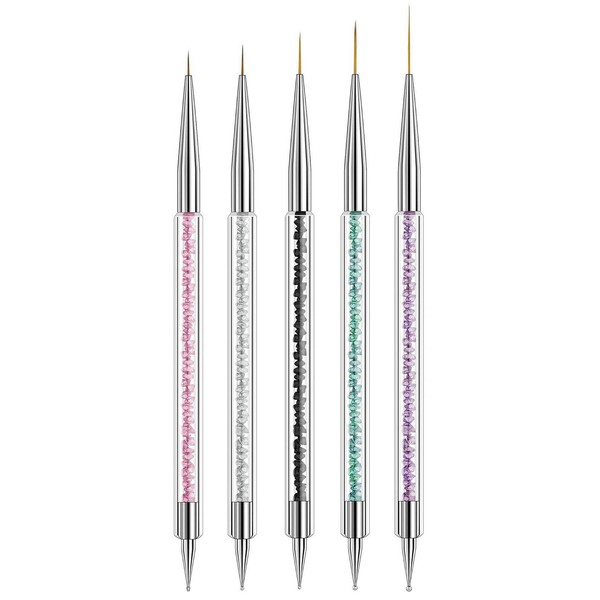 MAGIC ARMOR 5pcs Nail Art Liner Brushes - Double Ended Nail Art Pens with Nai...