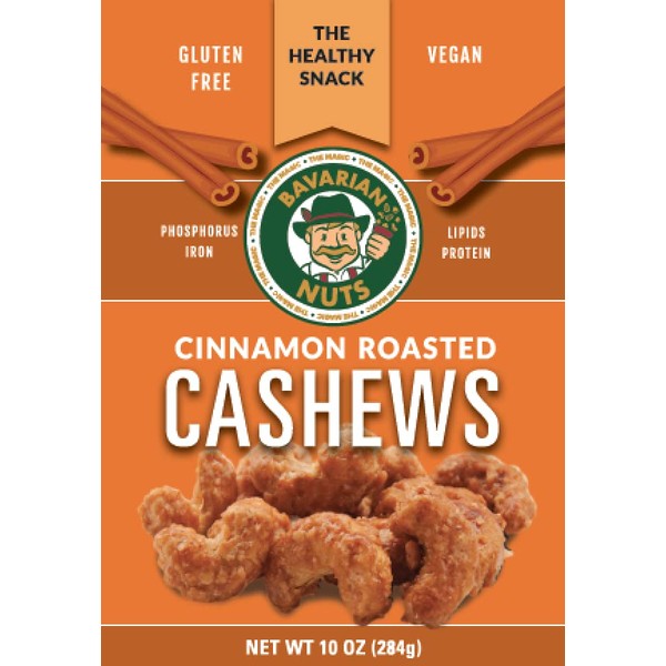 Magic Bavarian Cinnamon Roasted Cashews, 10 Oz - Sweet, Gluten-Free, Vegan Nuts, Made in the USA